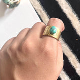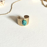 An elegant 18K gold-plated ring set with a serene Turquoise stone, this piece captures the essence of refined simplicity and modern allure. The soothing blue-green hues of Turquoise carry protective and calming energies, beautifully complemented by the radiant warmth of gold. Minimal yet captivating, it is designed for everyday elegance with a touch of mindful luxury. Limited pieces available, making each one a rare and distinctive treasure.